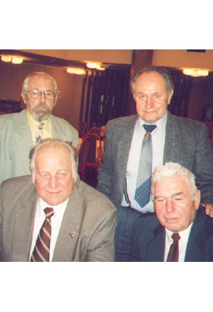 Úspěšní olympionici, po padesáti letech od legendárního úspěchu (nahoře zleva): korm. Koranda, K. Mejta,